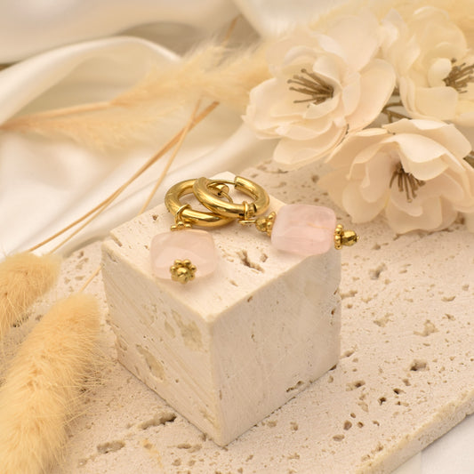 Boucles d'oreille ANOUK - Quartz rose